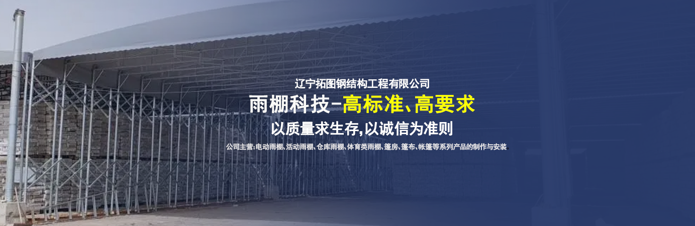 遼寧拓圖鋼結(jié)構(gòu)工程有限公司是一家專業(yè)從事推拉篷設(shè)計(jì)、制作、安裝、使用、維修的綜合性公司。公司主營:電動(dòng)雨棚、活動(dòng)雨棚、倉庫雨棚、體育類雨棚、篷房、篷布、帳篷等系列產(chǎn)品的制作與安裝?! ?nbsp; 遼寧拓圖鋼結(jié)構(gòu)工程有限公司堅(jiān)持以市場為導(dǎo)向,以科技創(chuàng)新為動(dòng)力,以質(zhì)量求生存,以誠信為準(zhǔn)則,倡導(dǎo)求實(shí)、進(jìn)取、創(chuàng)新的企業(yè)精神?!翱茖W(xué)的管理、嚴(yán)謹(jǐn)?shù)脑O(shè)計(jì)、 的制作安裝、嚴(yán)格的質(zhì)量檢測、良好的后期服務(wù)成就企業(yè)的信譽(yù),為您提供優(yōu)質(zhì)服務(wù)。 遼寧拓圖鋼結(jié)構(gòu)工程有限公司傾力于開發(fā)應(yīng)用三維空間結(jié)構(gòu)與新材料的結(jié)合,將廣告藝術(shù)視覺表現(xiàn)形式與張力膜材科學(xué)的結(jié)合,推出多彩推拉蓬,依靠先進(jìn)的科學(xué)技術(shù),將推拉蓬建筑表現(xiàn)形式無限延伸,立志走在建筑科學(xué)的前沿,引導(dǎo)建筑時(shí)尚潮流,我們的目標(biāo)是使推拉蓬建筑在中國發(fā)展壯大?! ?nbsp; 遼寧拓圖鋼結(jié)構(gòu)工程有限公司憑著極強(qiáng)的事業(yè)熱情和豐富的專業(yè)經(jīng)驗(yàn)以“勤勉進(jìn)取、銳意創(chuàng)新、至誠至信”的精神使公司得到迅速健康發(fā)展,業(yè)務(wù)范圍遍及全國。科學(xué)的管理、嚴(yán)謹(jǐn)?shù)脑O(shè)計(jì)、高標(biāo)準(zhǔn)的制作安裝流程,嚴(yán)格把控產(chǎn)品質(zhì)量,熱誠的售后服務(wù)是企業(yè)競爭力的源泉?! ?nbsp; 遼寧拓圖鋼結(jié)構(gòu)工程有限公司人愿以最誠摯的態(tài)度,歡迎廣大客戶的蒞臨與溝通!愿為市場提供優(yōu)...
